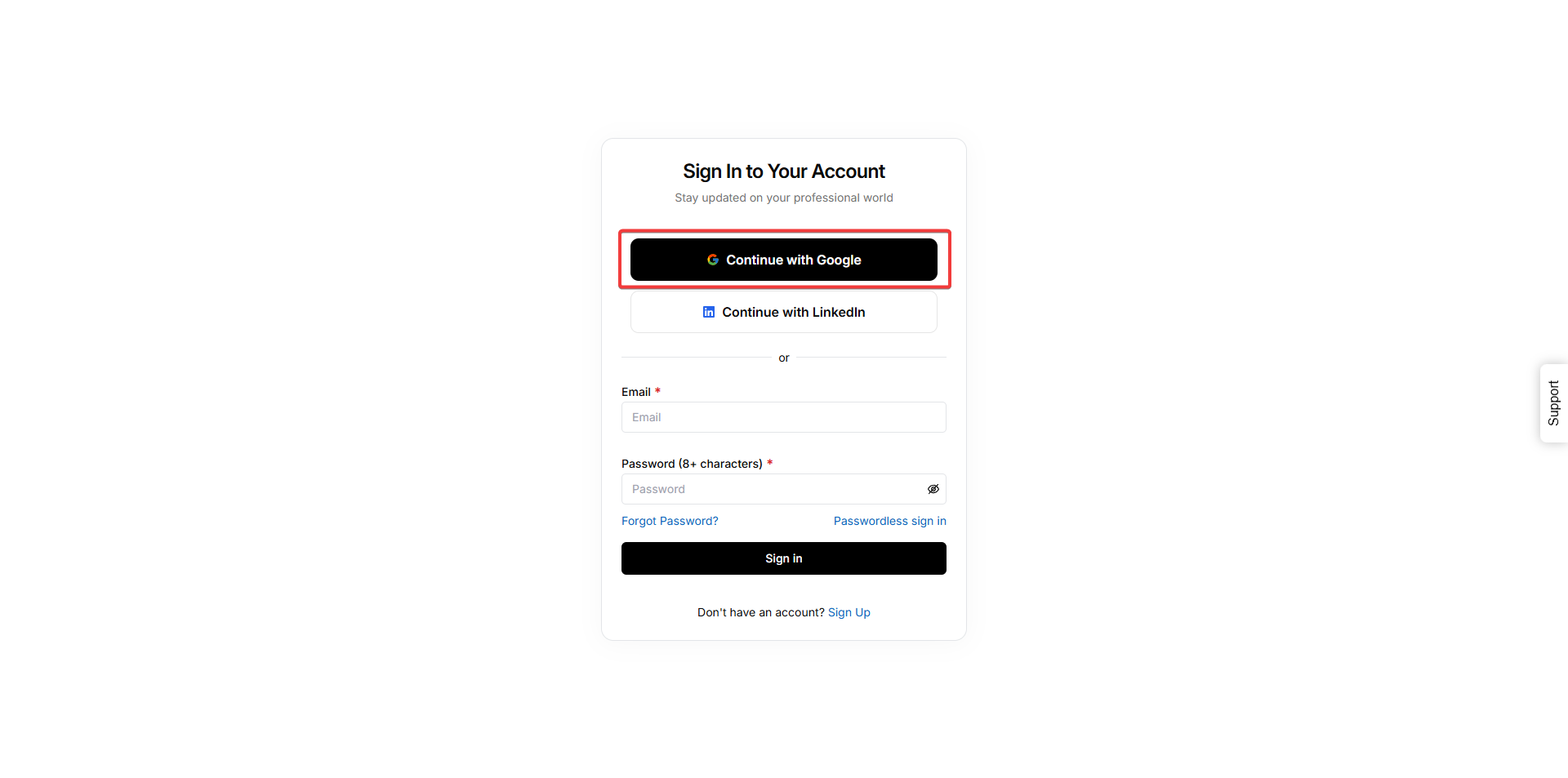 Important Note for New Users: Sign up using Continue with Google or Continue with LinkedIn only. Regular email/password sign-up is not available for new accounts.