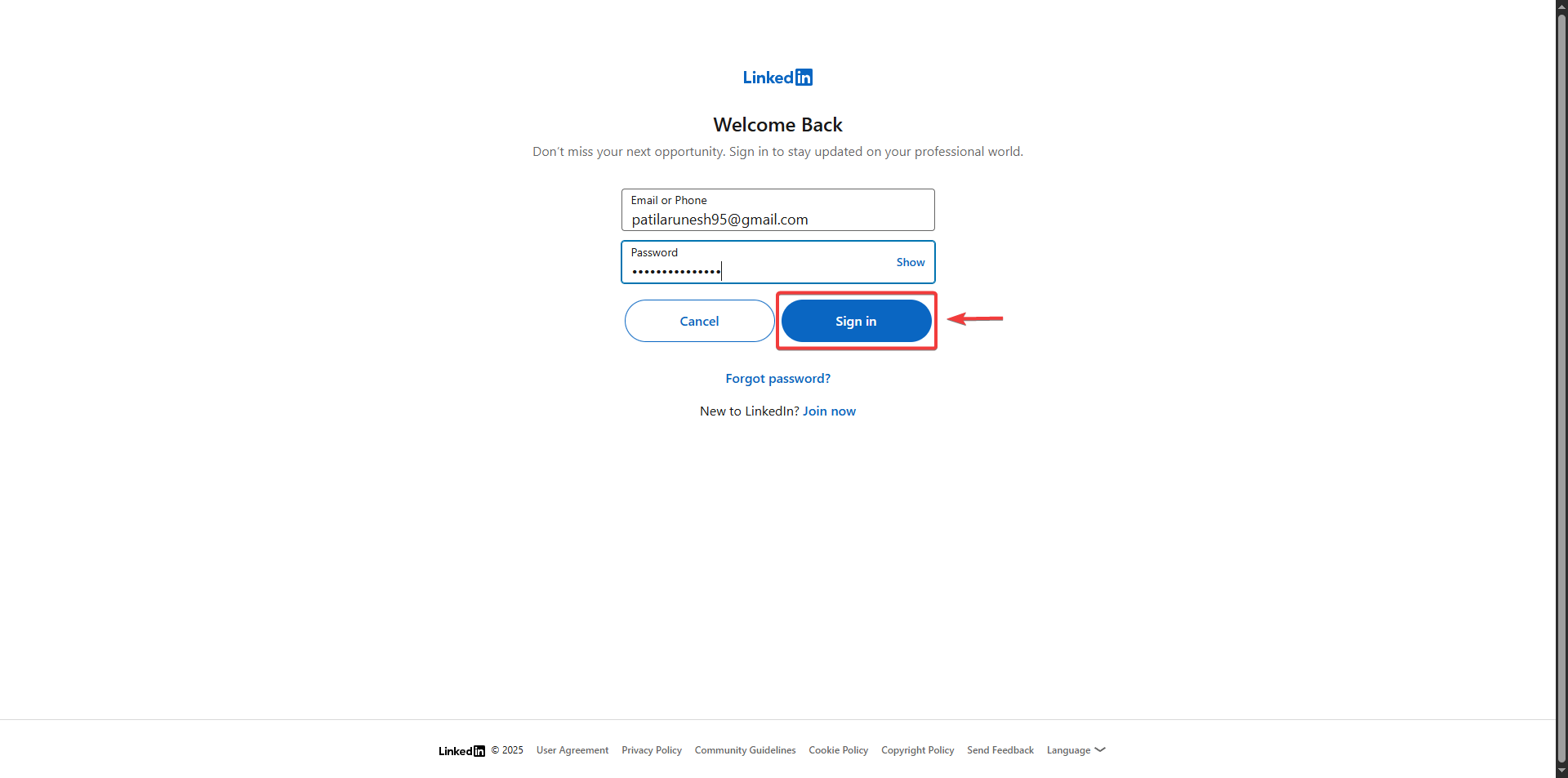 - Click Continue with LinkedIn to be redirected to LinkedIn’s login page.