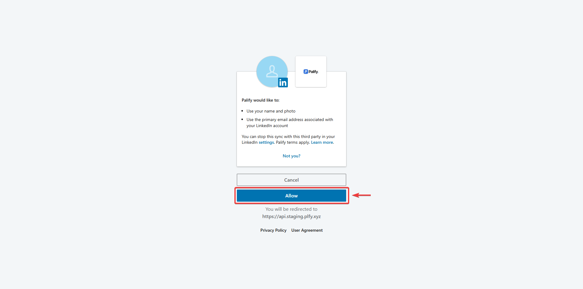 - Click Allow to authorize Palify to access your LinkedIn profile information.
